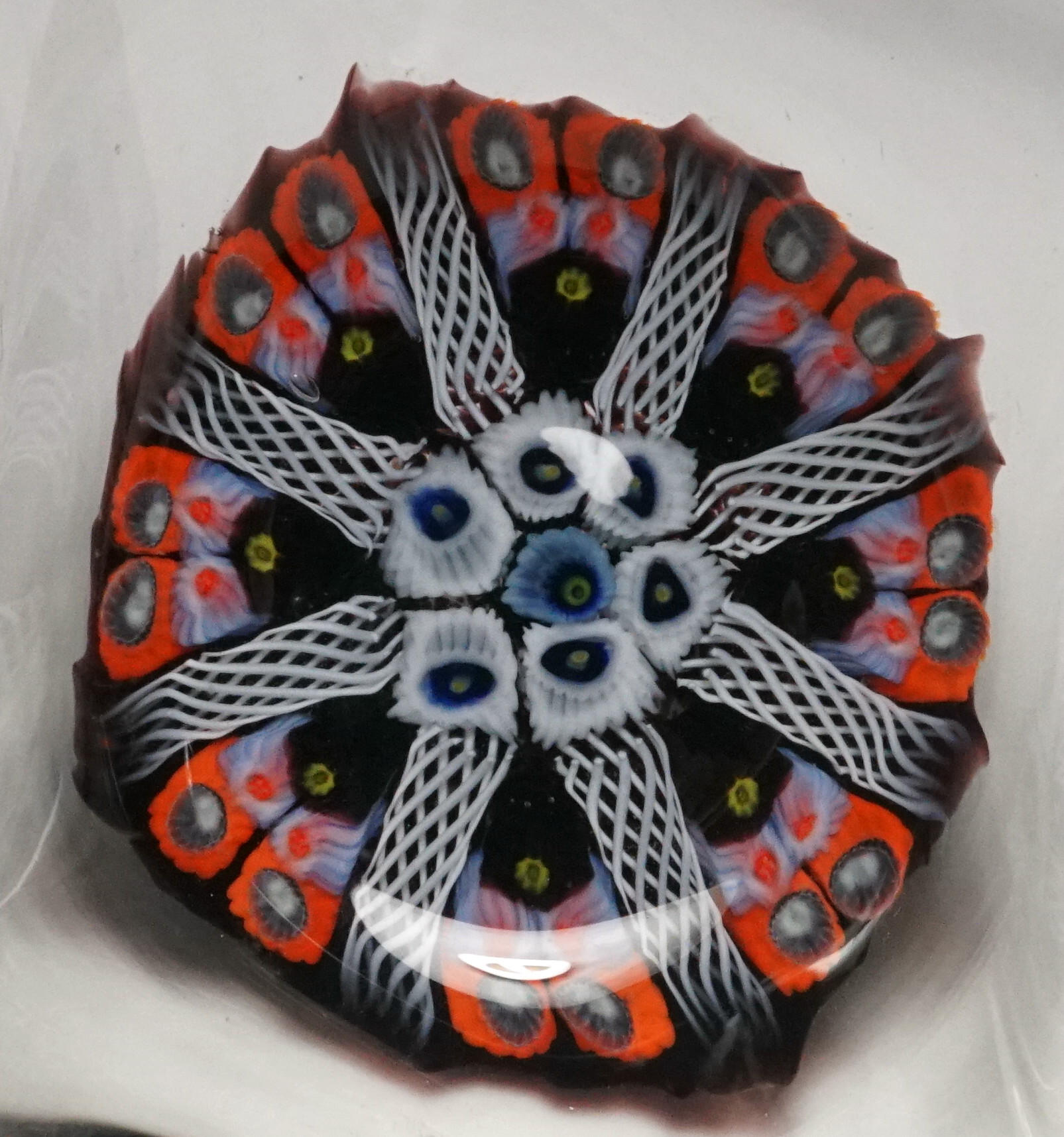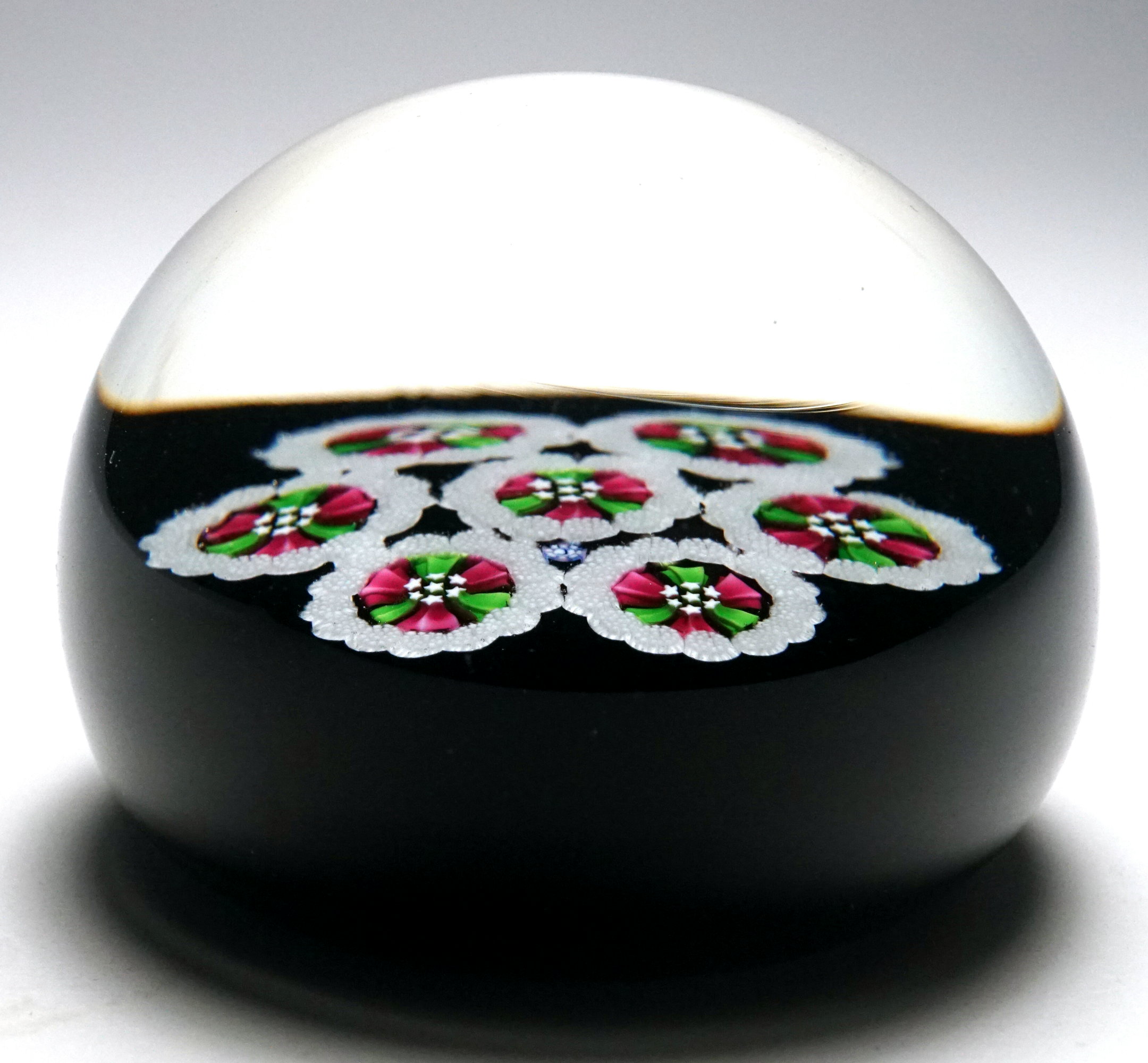 ring concentric millefiori paperweight features a large white