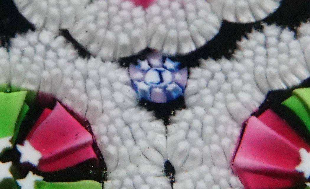millefiori canes and then a center millefiori cane. The canes