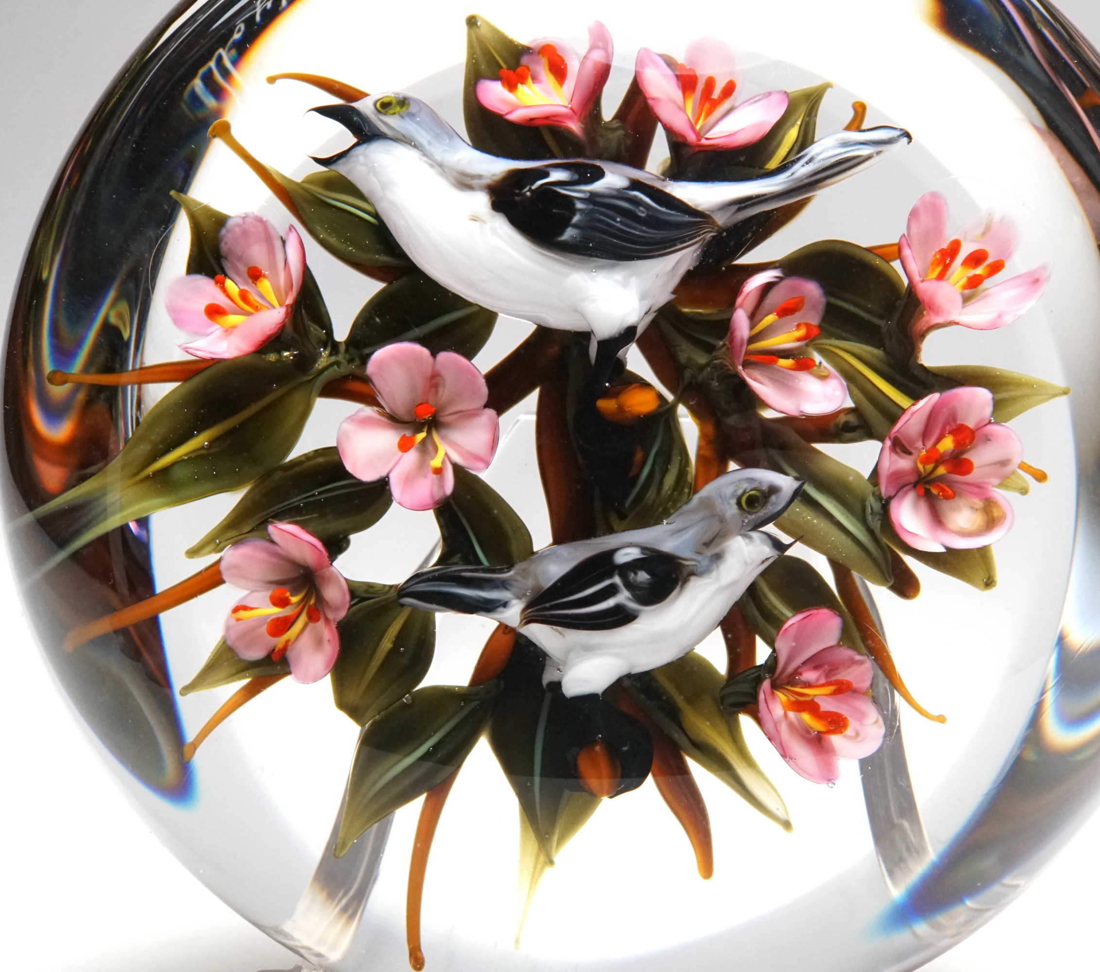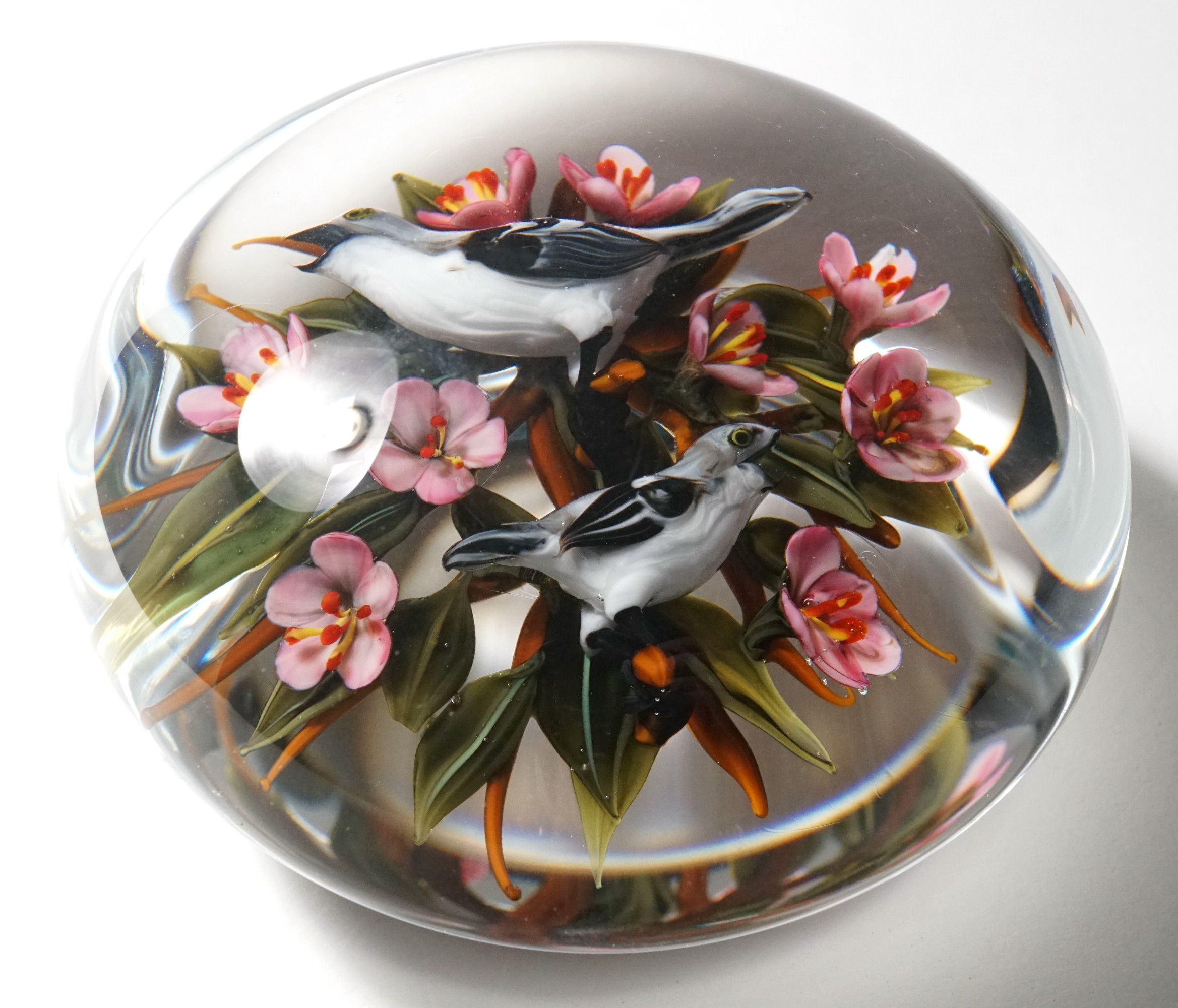 Paperweight with a Pair of Mockingbirds and Peach Blossoms.